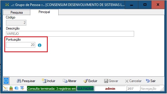 - Cada Tipo de Pessoa cadastrada receberá uma pontuação.