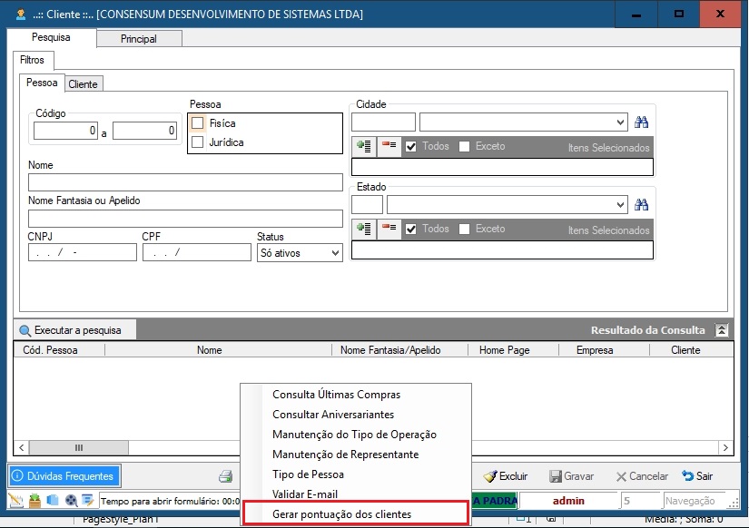 - Acessar o módulo Cliente/Pessoa localizado no menu Administrativo > Geral > Cliente/Pessoa